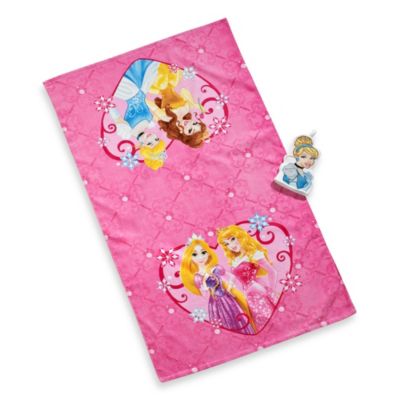 Disney princess hooded towel features cinderella, tiana and aurora.